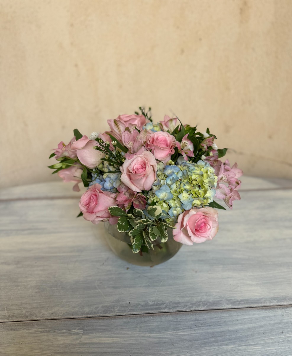 Pink and Cream rose, the flower of Delta Gamma wtih pink, blue and beige aceents