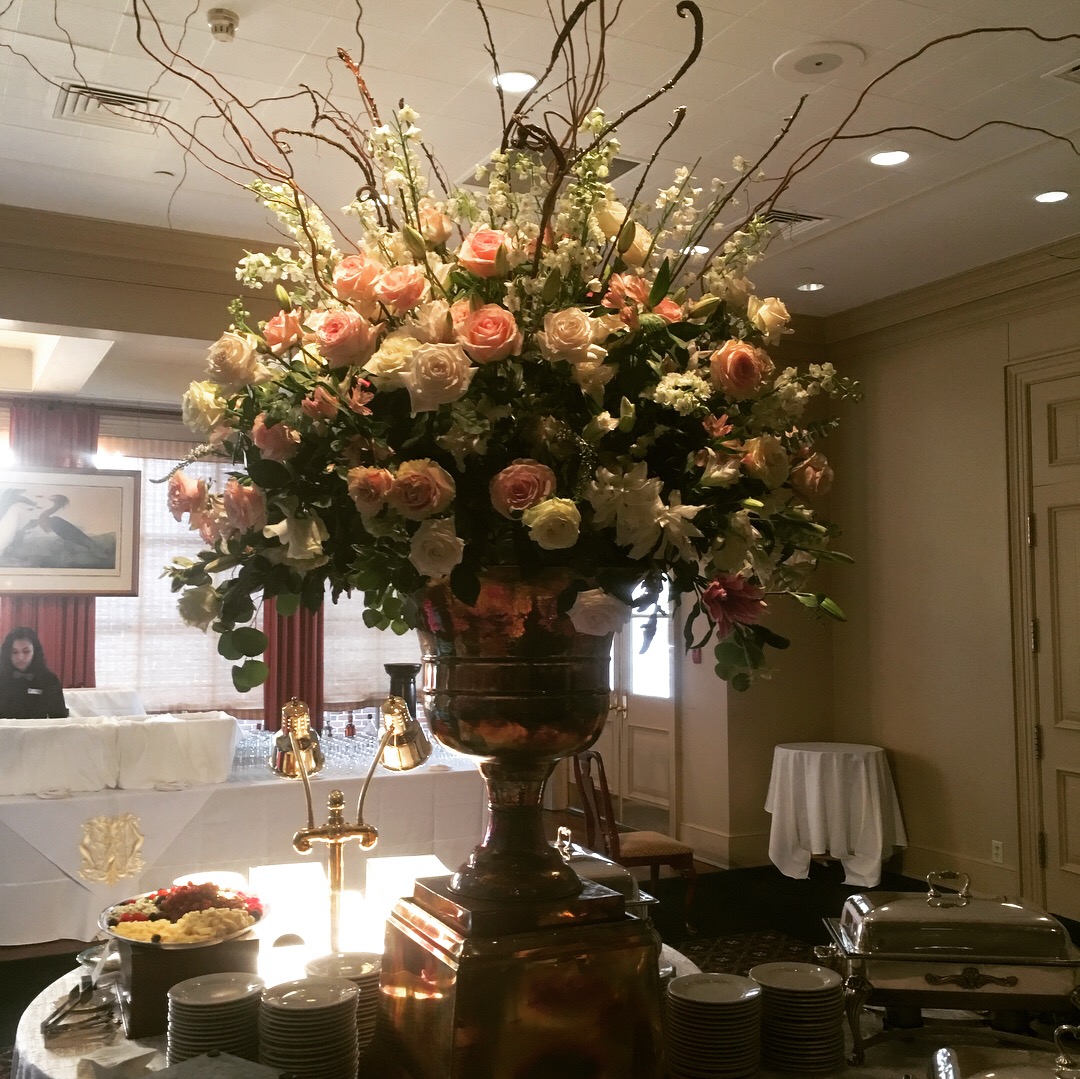 Gold and Copper Urn with flowers