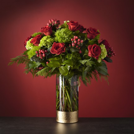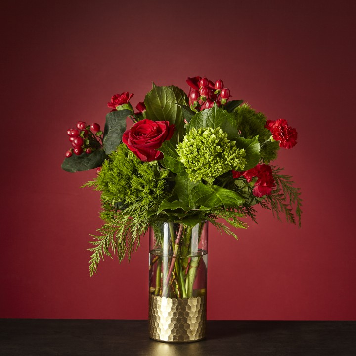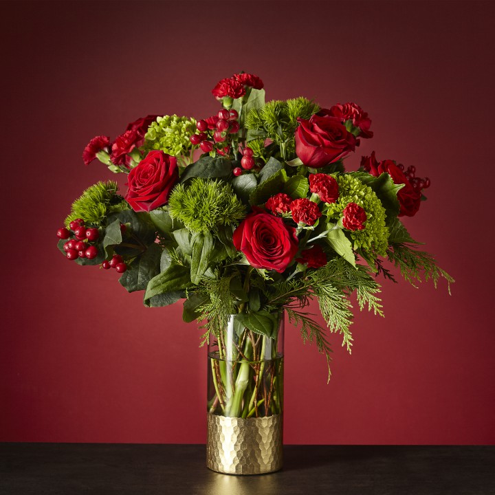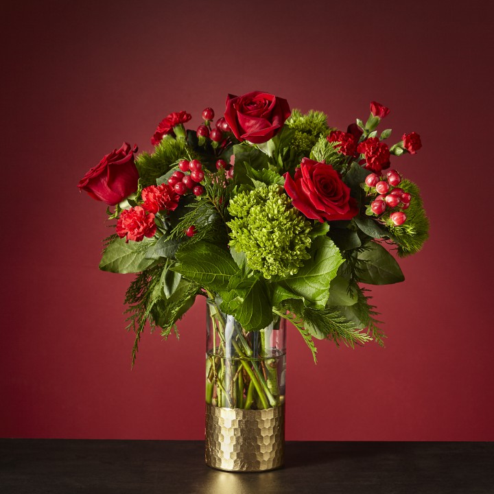 Why wait to unwrap gifts till Christmas morning? Send yourself this breathtaking Home for the Holidays Bouquet and let the artistry of flowers surprise you. The gold–dipped vase matches the tinsel around the tree, creating nostalgia for decked halls in your childhood home.