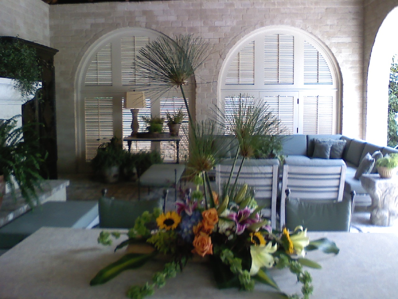 Tropical style with assorted tropical flowers for the center of a table
