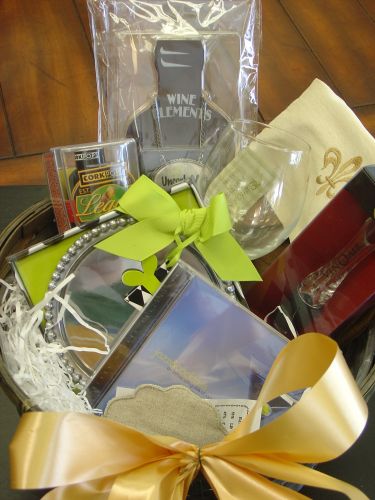 All you need is a bottle of bubbly to go with this wine gift set. Sit back, relax and enjoy a glass. Gift set includes: An automatic bottle opener, a set of wine charms, Fleur de Lis wine cover, an aerator, Fleur de Lis wine bottle coaster, stopper and wine glass coaster are just a few of the items available. We can custom make your basket to make Dad’s bar the best in Baton Rouge. Old Fashion glasses by Waterford to pewter bottle stoppers from Mariposa, Beatriz Ball and Stone Whiskey rocks… just call Rickey Heromans to have your custom package done today.